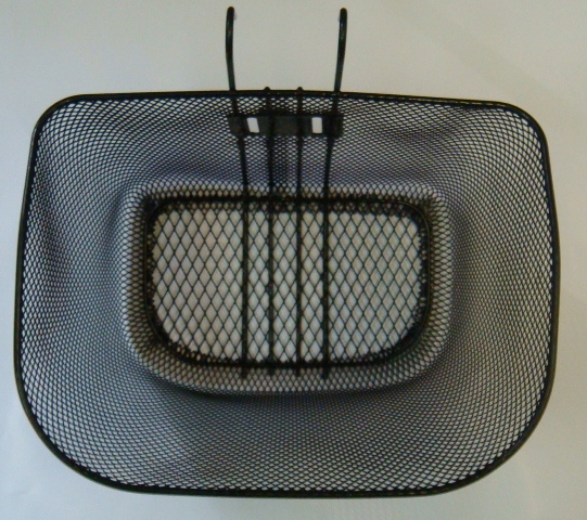 Корзина велосипедная, крепление на руль и на рулевую, на велосипеды с амортизационными вилками, размеры 34x25x26cм, обрезиненная.
