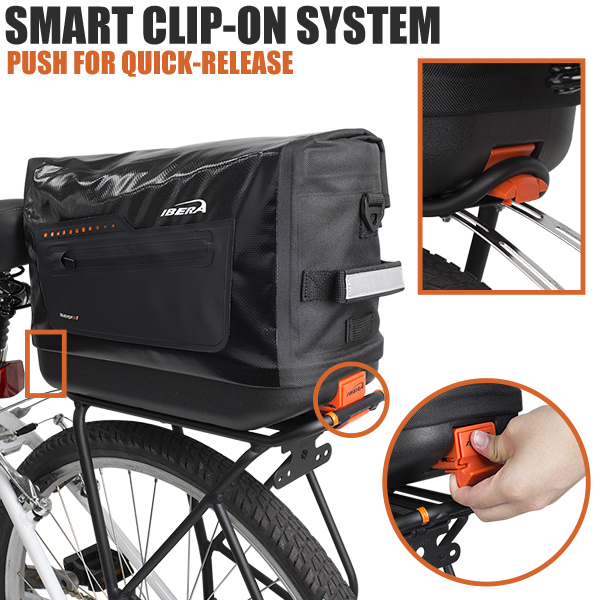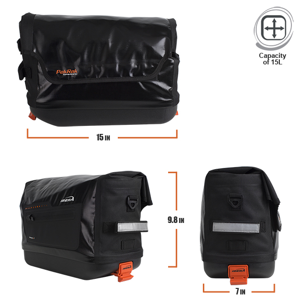 Сумка-кофр IBERA IB-BA22 c жёстким каркасом, влагозащищенная, материал 100% Waterproof 500 Tarpaulin, 600D Polyester, общий объем 15 литров, быстросъемный механизм Smart Quick Release/Clip-on System, ремень на плечо для переноски, подходит на любые на багажники IBERA.