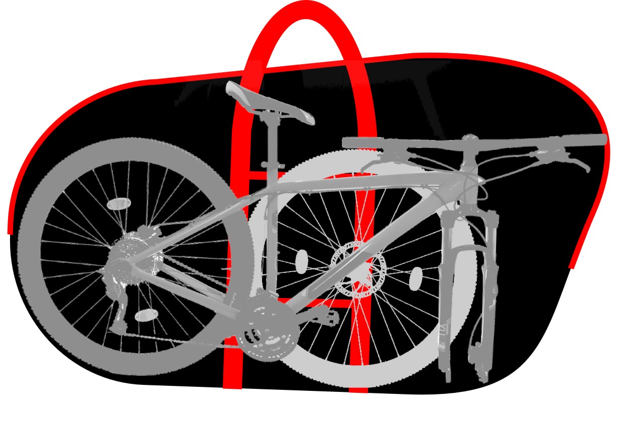 Это классическая компоновка велочехла для перевозки и хранения велосипеда со снятым передним колесом (снятое колесо помещается в чехол вместе с велосипедом). Велочехол складывается сам в себя (чтобы собрать чехол - выверните карман)