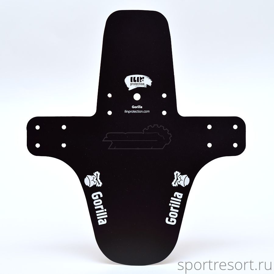 Крыло-щиток Gorilla, длинное, размеры 30х10/14 см, простое крепление хомутами на вилку или на задние перья, материал черный ПВХ-пластик, надписи белого цвета.