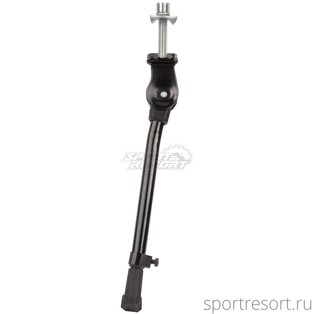 Подножка алюминиевая, для велосипедов с колёсами  20-29" регулируемая, центральное крепление, с планкой, универсальная, черная.