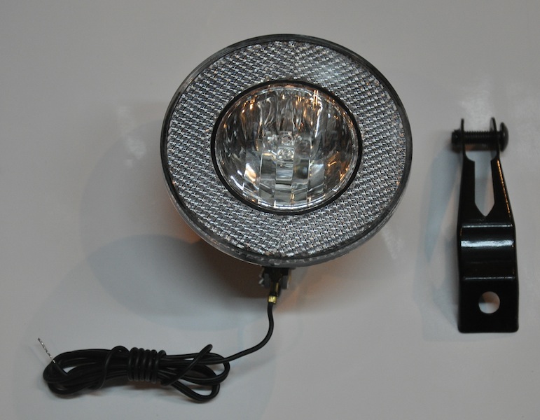 Фара передняя ГАЛОГЕН для динамо-генератора, питание 6V/2.4W, крепление в комплекте, диаметр 75 мм, кабель 80 см.