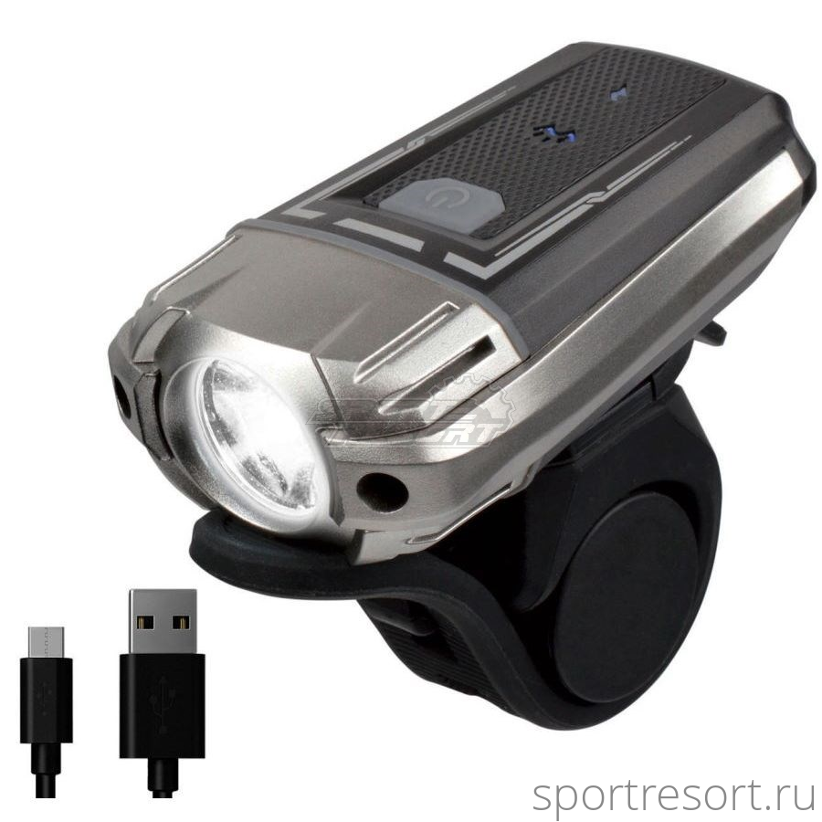 Велофонарь Briviga EBL-2273, диод CREE, максимальная мощность 300 люмен, встроенный аккумулятор 1200 мАч, зарядка от USB, влагозащищенный корпус, индикатор слабого заряда, универсальный хомут на любые рули.