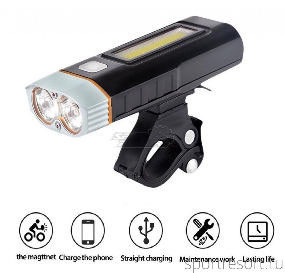 Девайс 3 в 1 - велофара, походный фонарь и PowerBank! Велофара UltraFire Multifunctional Bicycle Light M48A, 2 диода CREE XM-L U2 500 люмен + верхний диод COB 200 люмен (функция походного светильника), 2 сменных акумулятора 18650 по 2000 mAh, зарядка от USB, индикатор заряда.3 режима работы велофары: 500 люмен, 200 люмен и мигающий 200 люмен.