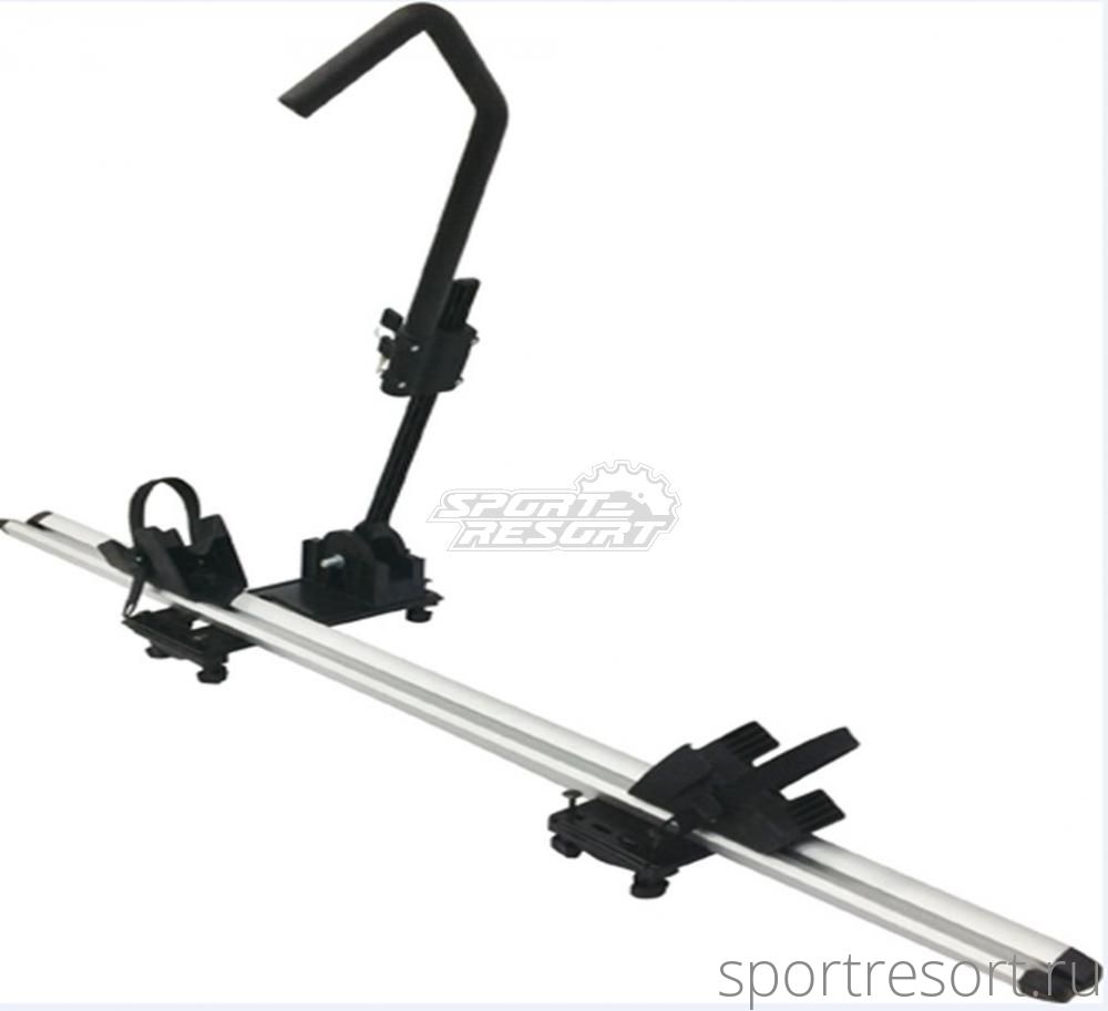 Багажник автомобильный на крышу, для одного велосипеда, с фиксацией за переднее колесо. Материал - алюминий.