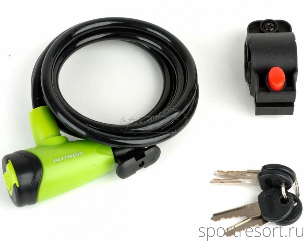 Велозамок Author 8х1500 мм с ключами (черно-зеленый)