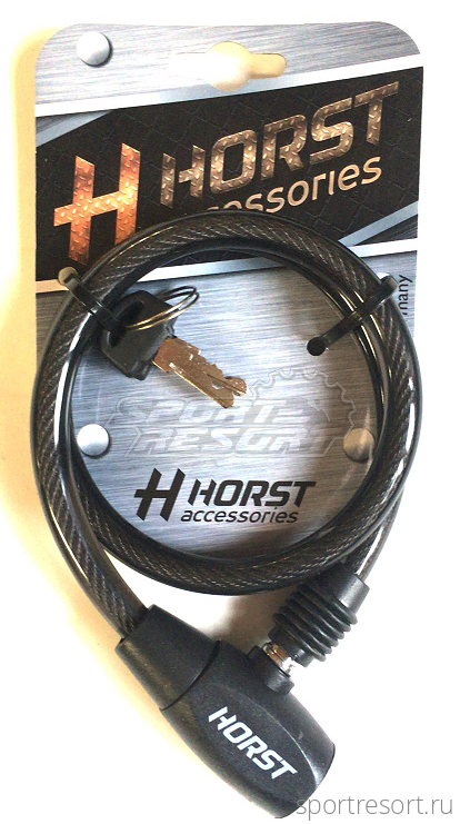 Велозамок HORST, толщина троса 10 мм, длина 650 мм, механизм на ключе.