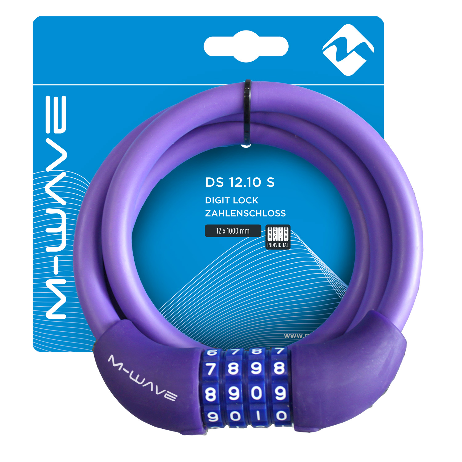 Велозамок M-Wave 12х1000 мм кодовый (фиолетовый)