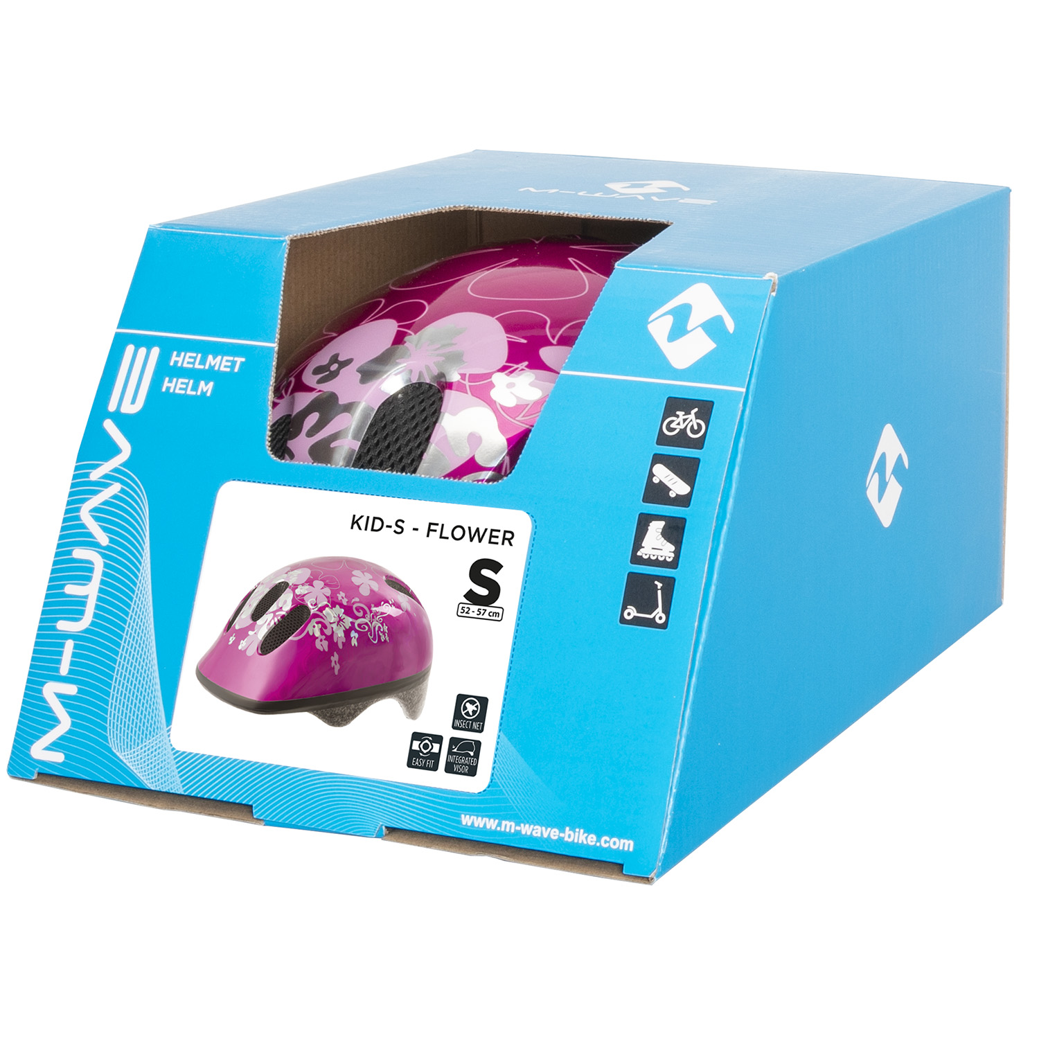 Велошлем M-Wave KID-S Curly, размер S 52-57 см, удобная подгонка по голове, система вентиляции, встроенный козырек.