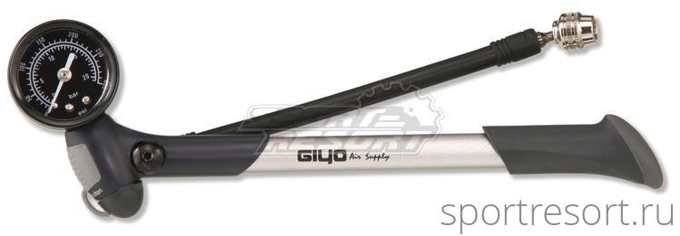Насос высокого давления Giyo GS-22 Shock Pump, для воздушных вилок и амортизаторов, максимальное давление до 21 бар/300 PSI, кнопка для микроподгонки давления, с удобной шарнирной головкой.