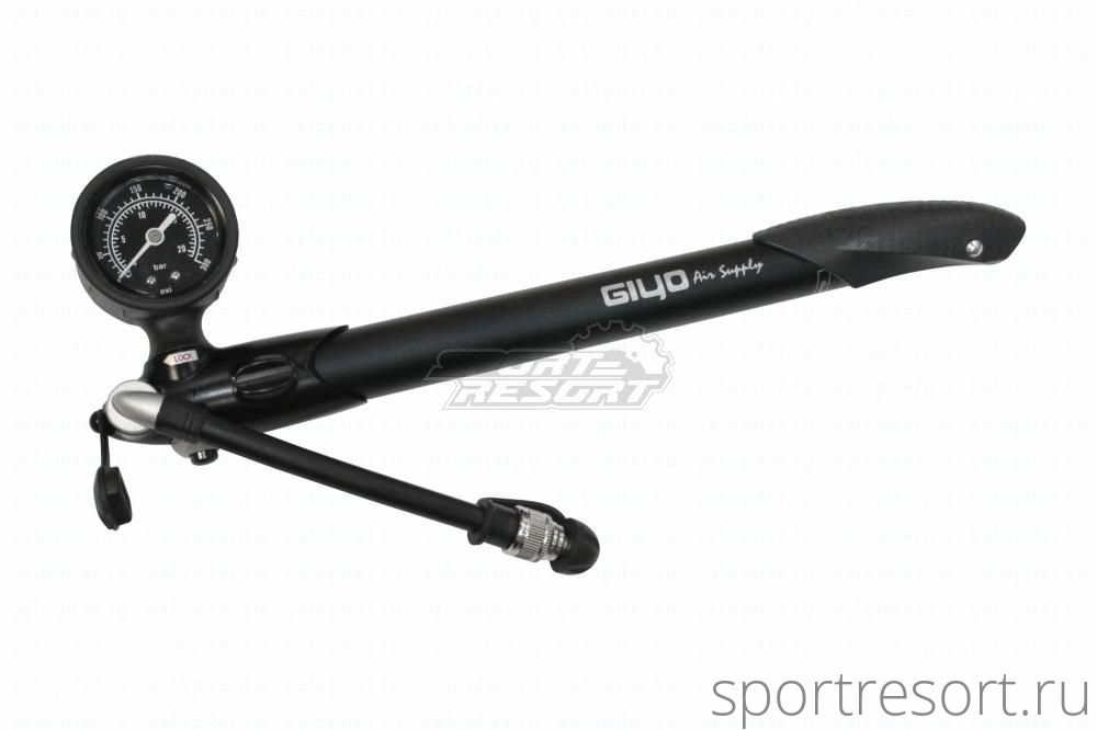 Универсальный насос высокого давления Giyo GS-41P Mini Shock Pump, подойдет для любого типа колес, вилок и амортизаторов, полностью алюминиевый корпус, Т-образная рукоятка, длина в собранном состоянии 30 см, в раскрытом 45, ход поршня 15 см, гибкий шланг 15 см, максимальное давление 300psi (21атм), съемный манометр, позволяет использовать как походный насос, под любые нипели A/V, F/V, клапан микроподгонки давления, крепление на раму, вес с креплением и манометром 300 грамм.