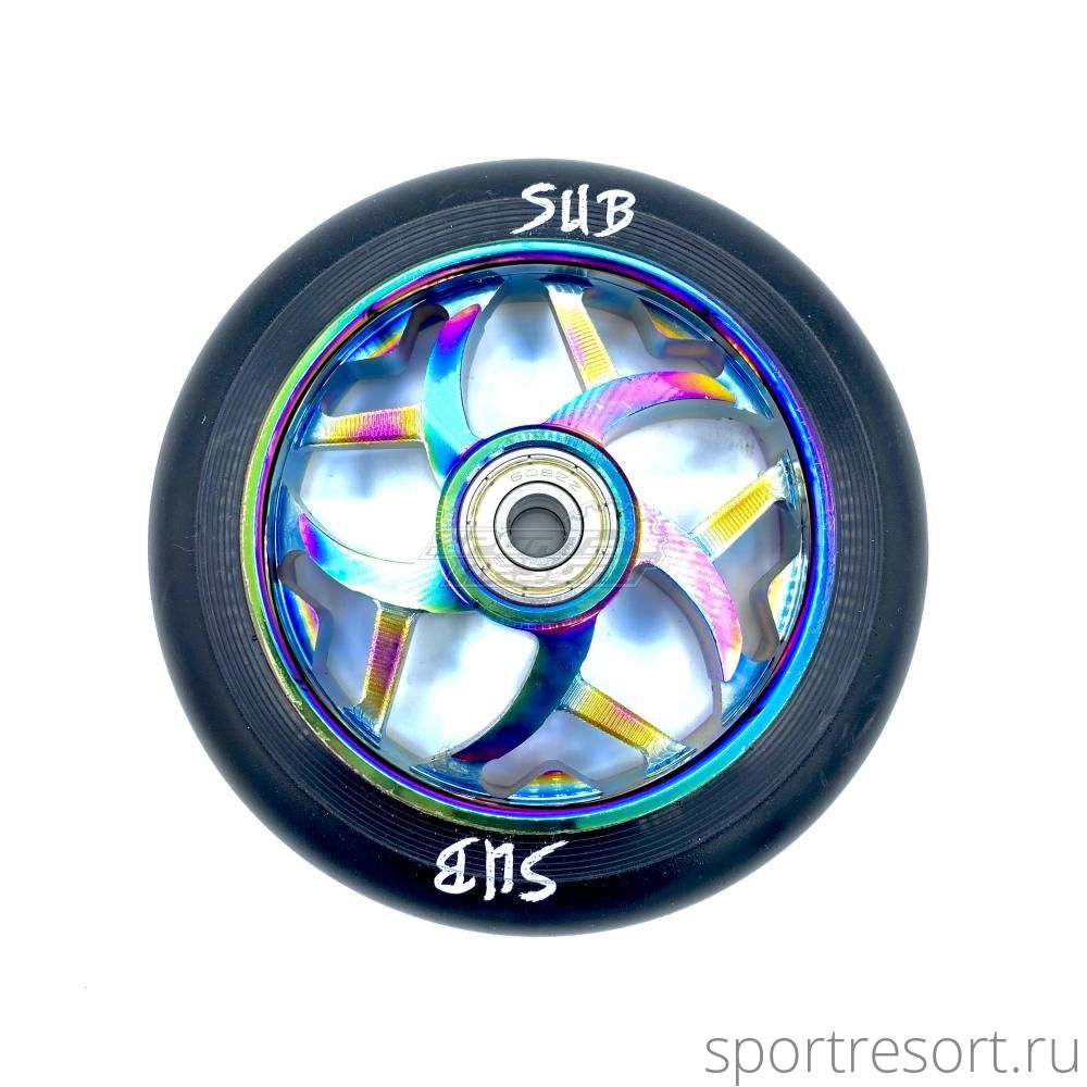 Колесо для трюкового самоката SUB, материал фрезерованный алюминий, на подшипниках ABEC9, диаметр 110 мм, цвет Oil Slick.