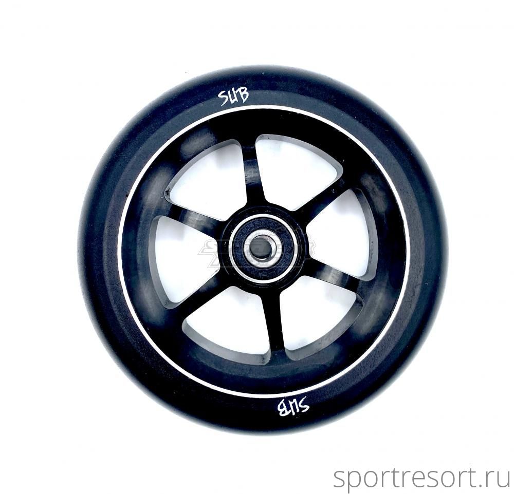 Колесо для трюкового самоката SUB, материал фрезерованный алюминий, на подшипниках ABEC9, диаметр 120 мм, цвет черный.