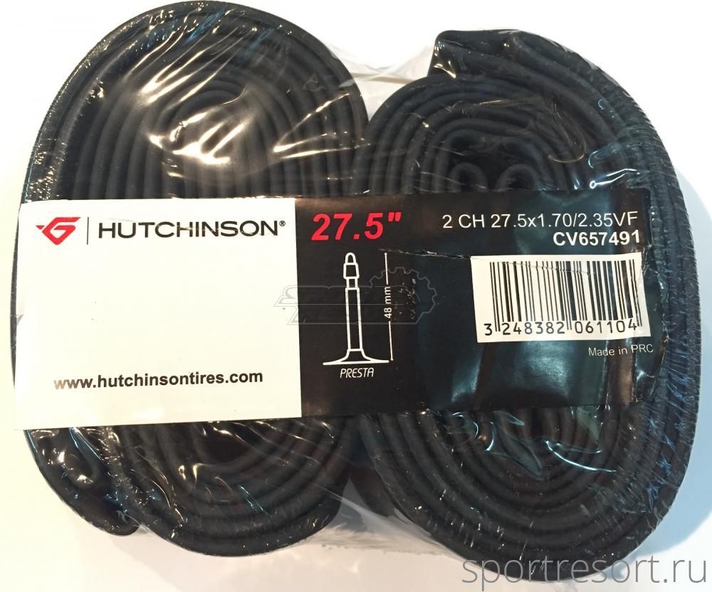 Комплект из двух велокамер 27.5 дюймов Hutchinson, размер 27.5x1.7/2.35, велосипедный ниппель F/V 48 мм, вес 173 грамма.