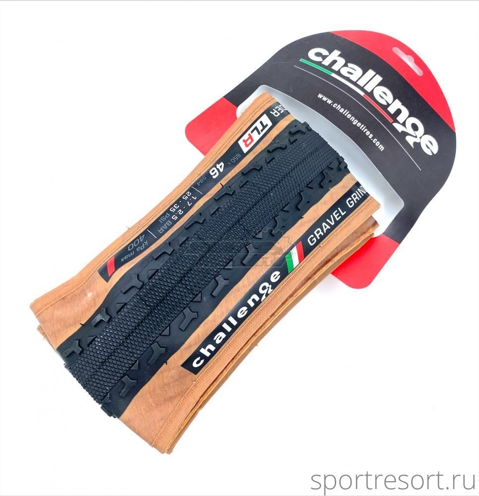 Гравийная велопокрышка Challenge GRAVEL GRINDER, серия RACE, размер 650х46 мм. TPI 120, совместима с бескамерными системами TLR. Корд из арамидных волокон (складной). Цвет: черные с коричневыми боковинами. Внешние покрытие: Nylon Superlight.Характеристики