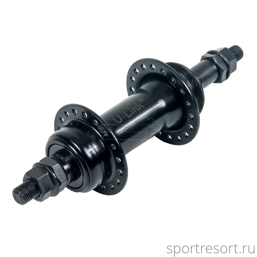 Втулка задняя U-Link, на 36 спиц, стальная, на гайках с шайбами, под ободной тормоз, под трещотку, ось 3/8", на 36 спиц, OLD 130 мм.Характеристики
