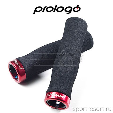 Грипсы Prologo Feather Lock Sys, ширина 130 мм, двухкомпонентные, ультралёгкие всего 65 грамм, черные с красными алюминиевыми грипстопами, всепогодные, для XC, Free Ride, Downhill, заглушки в руль в комплекте.