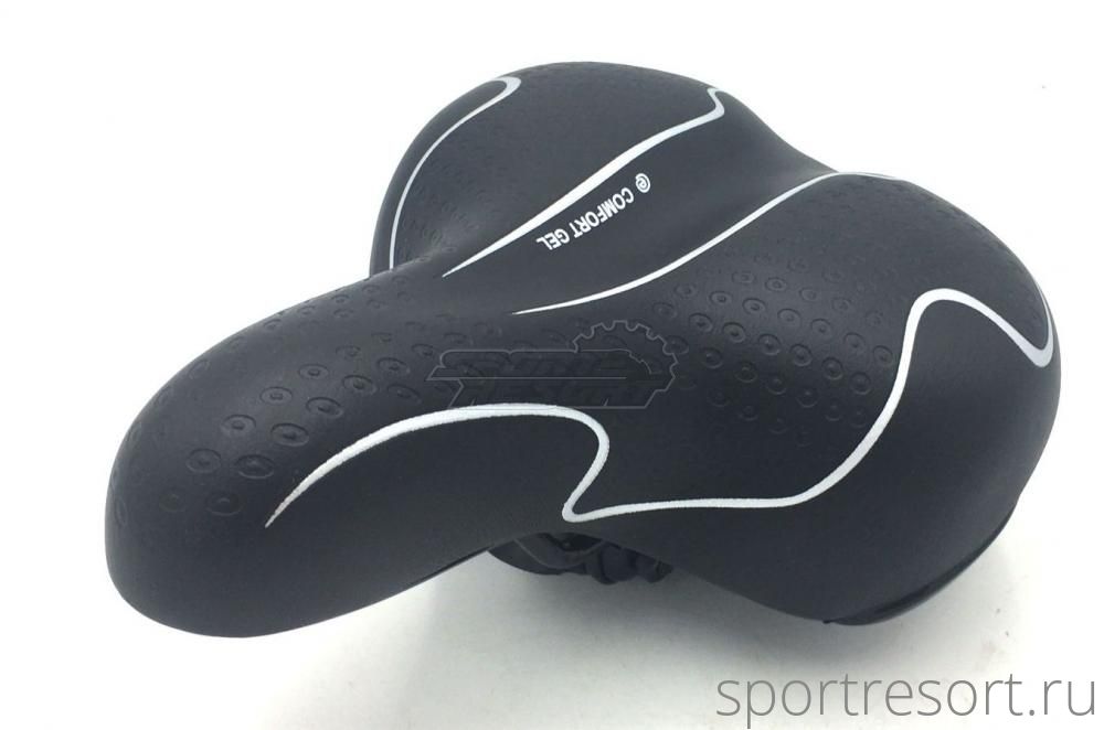 Седло комфортное, гель, с замком, размеры 250X215мм мягкое, пружины закрытого типа, вес 630гр черное с серебристым узором.