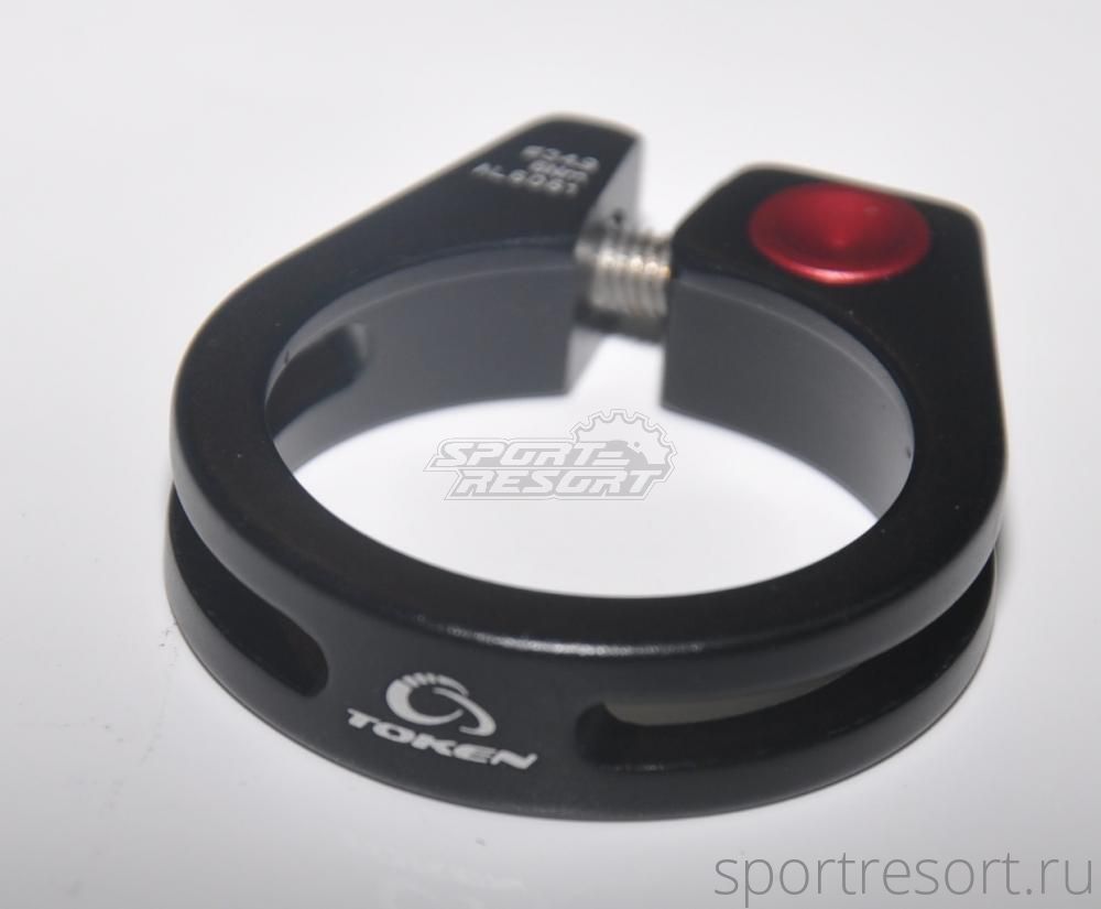 Хомут подседельный Token TK161F5, с болтом из нержавейки, диаметр 34.9 мм, чёрный, вес 21 грамм.Характеристики