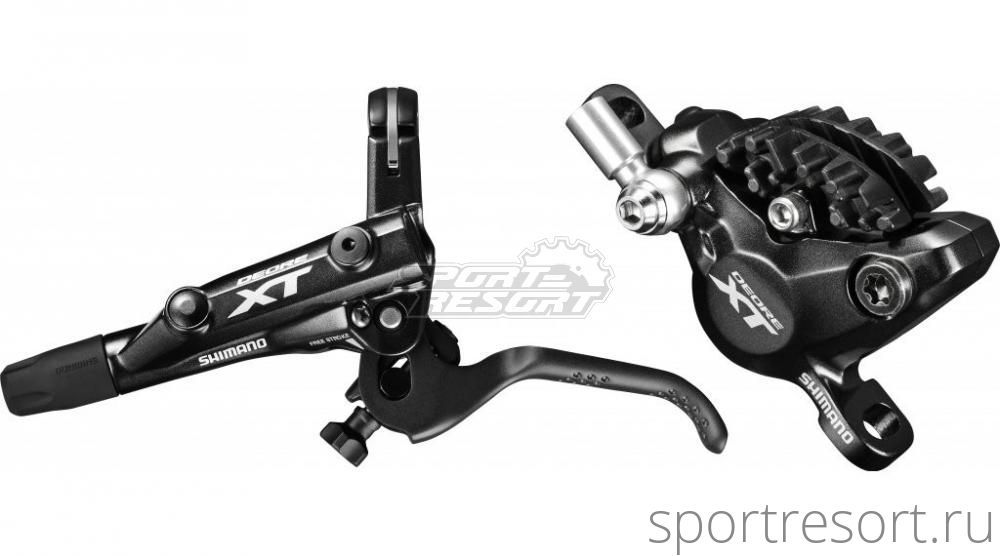 Тормоз дисковый Shimano XT M8000, передний - левая ручка, длина гидролинии 1000мм. Без адаптера, колодки в комплекте пластик (композит) с радиатором. Устойчивый, предсказуемый и мощный. Более стабильная работа тормоза в различных условиях без изменения положения ручек.Мощное и контролируемое торможение для всех стилей катания МТБ. Легкое обслуживание. Тормозная система с настройкой на велосипедиста. Пластик/металл/ребро пластик/ребро металл. Легкая регулировка. Интегрированная конструкция Обтекаемая, долговечная и чистая конструкция главного цилиндра с I-spec II. Более легкий вес 399,9 гр (для комплекта передних).