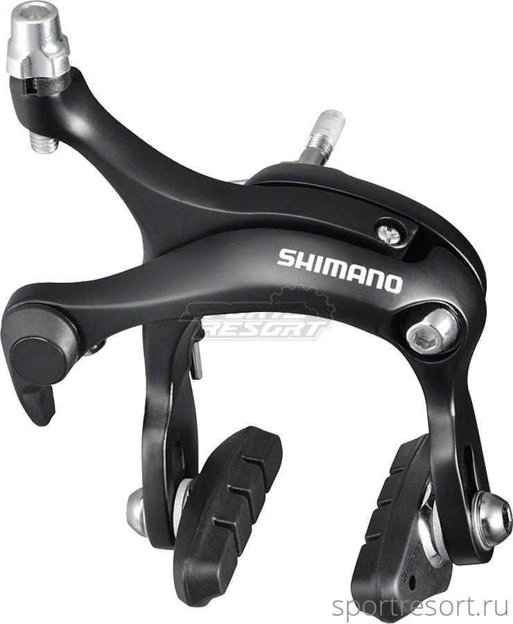 Тормоз клещевой Shimano BR-R451, передний, гайка:10.5/12.5/18/27 мм, пролет 57 мм, колодки R50T2, черный.