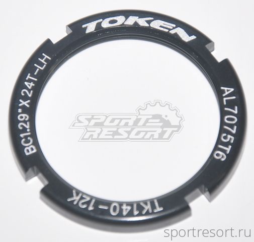 Стопорная гайка Lock Ring Token TK140, для TRACK, FIX, Single Speed, 1.29"x24L, левая резьба, материал алюминий 7075, цвет черный.