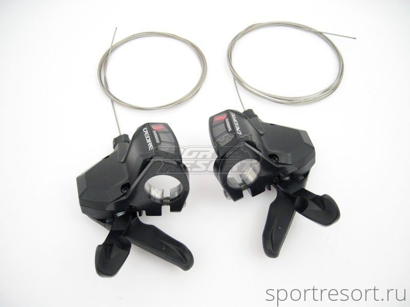 Манетки Shimano Deore SL-M590, комплект левый и правый, для привода 3x9 скоростей, с индикатором переключения скоростей, тросики в комплекте.Спецификации: