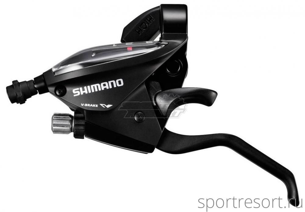 Шифтер с тормозной ручкой Shimano Tourney ST-EF510, левая сторона, 3 скорости, цвет черный, трос 1800 мм в комплекте.