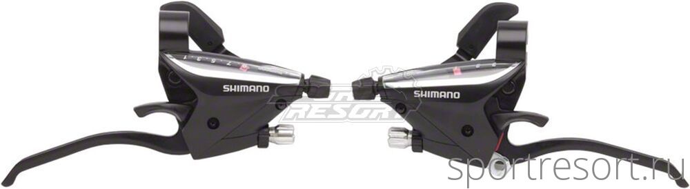 Переключатели скоростей совмещенные с тормозными ручками (моноблок) Shimano ST-EF65, левая и правая сторона, для привода 3x9 скоростей, тормозная ручка под 3 пальца, цвет черный, тросы и оплетка в комплекте.