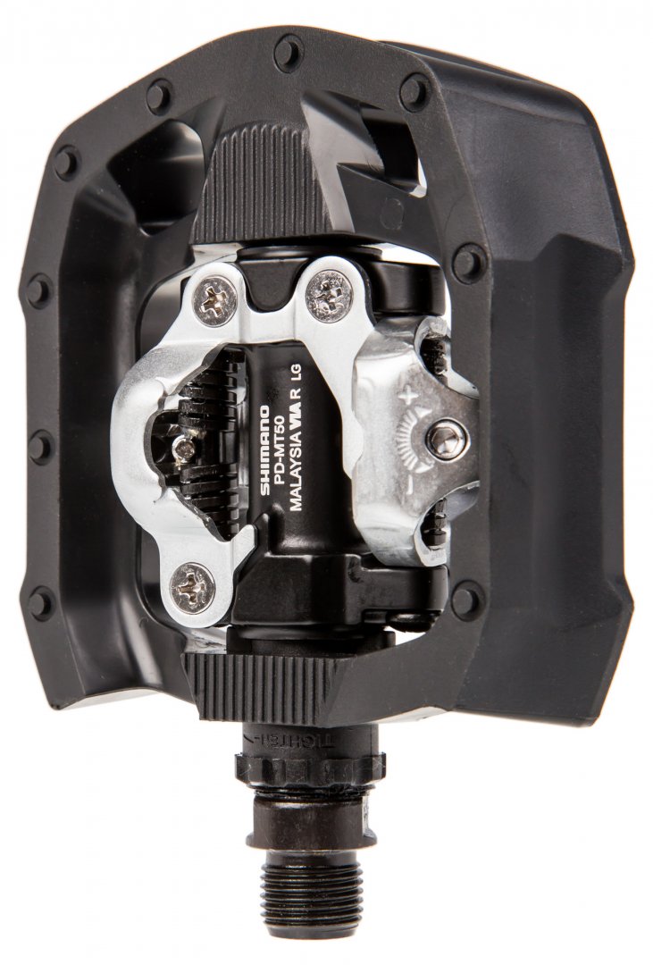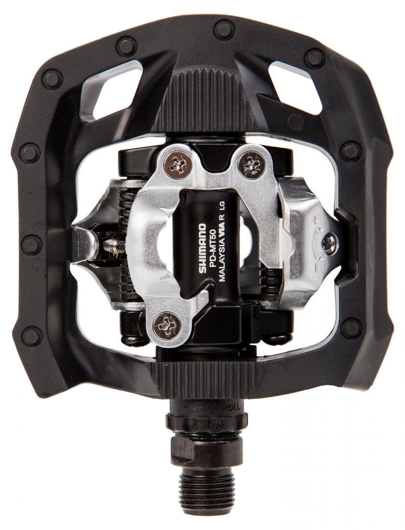 Shimano PD-MT50 - педали в стиле MTB для различного использования. Они относятся к серии Click'R, поэтому они оснащены более мягкой пружиной для поддержки встегивания и выстегивания. Такие педали отлично подойдут новичкам, для тех, кто решил попробовать пересесть с классических платформ на контактные педали, или для тех, кто катается исключительно в городе и его окрестностях. В дополнение к двустороннему механизму SPD, у них также есть платформа, однако конструкцию сделали максимально открытой, чтобы педали хорошо очищались.Спецификации: