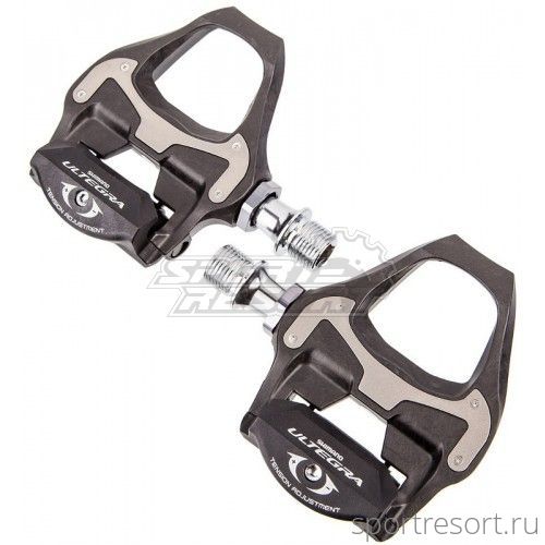 Педали Shimano Ultegra PD-6800 SPD-SL, с шипами, низкопрофильный дизайн, высота рамки всего 10.7 mm, легкий доступ к настройке жесткости, вес 283 грамма (пара).