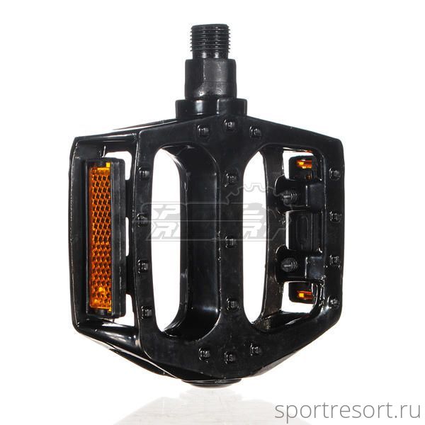 Педали алюминиевые, литые, широкие, с отражателями, резьба 1/2", черные.