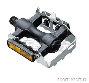 Педали пластиковые с алюминиевым ободом, с отражателем. Цвет серебряно-черный.