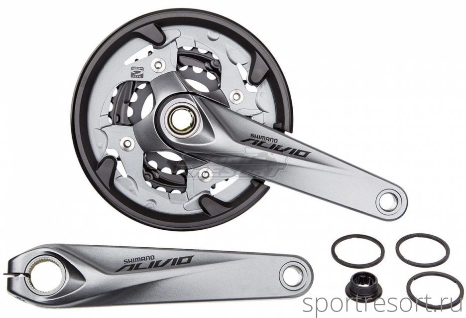 Система Shimano Alivio FC-M4050, длина шатунов 170 мм, интегрированный вал, звезды 40/30/22T, без каретки, с защитой звезд. Для 9 скоростной трансмиссии.