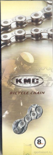 Цепь велосипедная KMC Z-8, размер 1/2x3/32", длина 114 звеньев, для привода на 8 скоростей, цвет серебро, вес 320 грамм, соединительный замок Quick Link в комплекте.